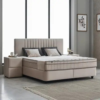 De Boxspring met opbergruimte Kaona biedt ongeëvenaard comfort door de gebruikmaking van een pocketveringmatras. Dankzij de individuele veren die zich aan de vorm van uw lichaam aanpassen, zorgt deze matras voor een optimale ondersteuning en bevordert het een diepere, meer verkwikkende slaap. Dit type matras is ideaal voor iedereen die zoekt naar een bed dat de natuurlijke lijnen van het lichaam volgt, zonder in te boeten op stevigheid. De bovenste laag van HR-koudschuim voegt daar nog extra zachtheid en ademend vermogen aan toe, waardoor de temperatuur in uw bed altijd aangenaam blijft.